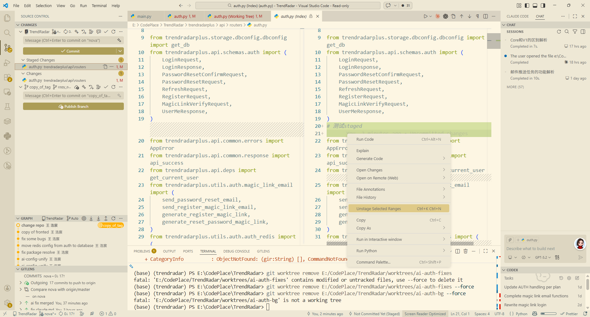 让AI在worktree写完后commit到 ai-fix 分支上【或者我们可以直接开一个worktree叫ai_playground然后每次ai写完了先Review和merge,然后再把 ai_fix 直接挪到merge后的结果上即可。这样就是开两个Vscode窗口就可以了】,然后用